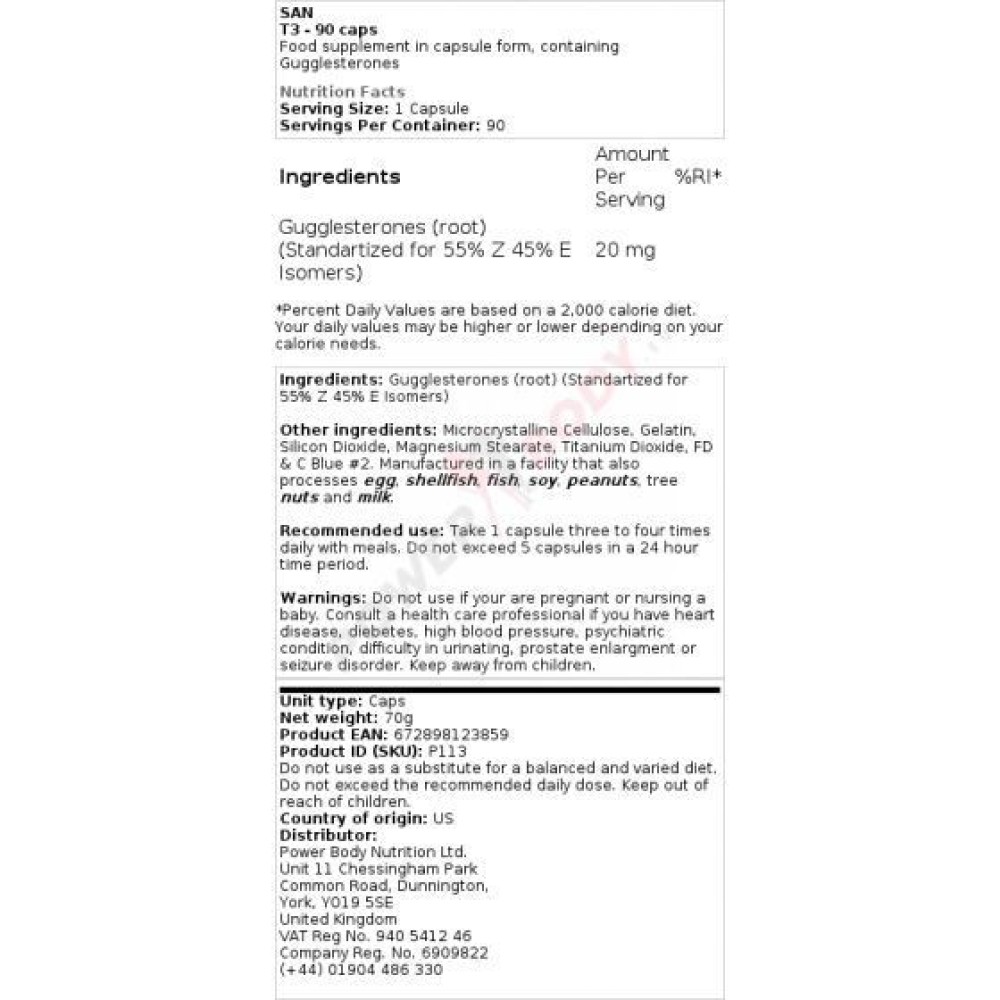 | Doziranje (medicinsko) | 25 mg gugulsterona tri puta dnevno |